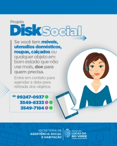 A Secretaria de Assistência Social e Habitação de Lucas do Rio Verde informa que o serviço de busca de itens para doação, o Disk Social, alterou os números para contato.