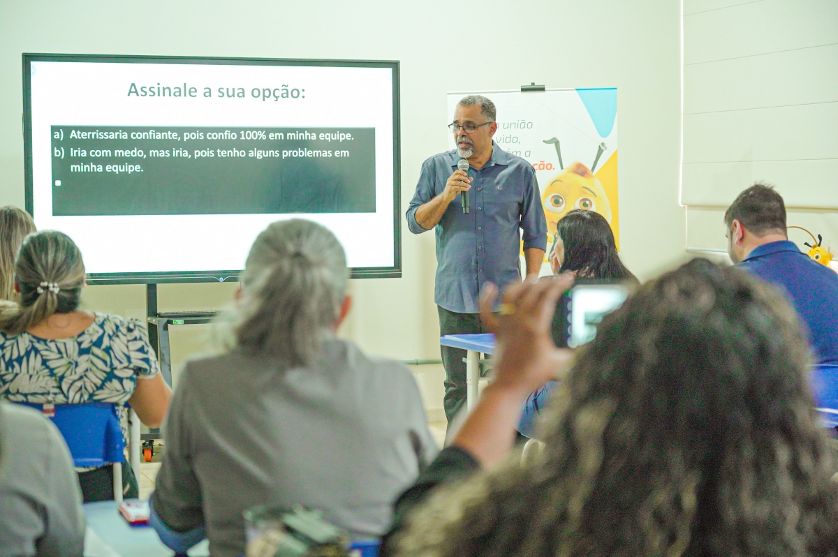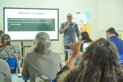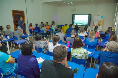 Mais de 100 professores, que atendem alunos das turmas do 5° ao 9° ano do ensino fundamental, participaram da aula ministrada pelo professor doutor em Ciências da Educação, Júlio Furtado.
