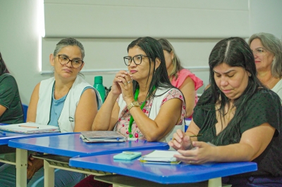 O encontro teve três módulos de treinamento durante toda a programação. No primeiro, foram divididas duas turmas de professores e uma turma específica de profissionais que fazem parte da Comissão Municipal de Avaliação.