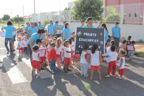 Um grupo de cerca de 50 crianças com idade de três anos, saiu às ruas de Lucas do Rio Verde portando faixas e cartazes. A intenção é mostrar o nível de conscientização sobre a alimentação e outros hábitos saudáveis como escovarem os dentes, a lavarem as mãos antes das refeições e a conhecer os alimentos. As monitoras também fizeram a distribuição de panfletos com orientações para outras crianças e aos pais. A atividade faz parte das ações do projeto “Educanvisa”. A iniciativa é uma parceria entre as secretarias municipais de Educação e Saúde.