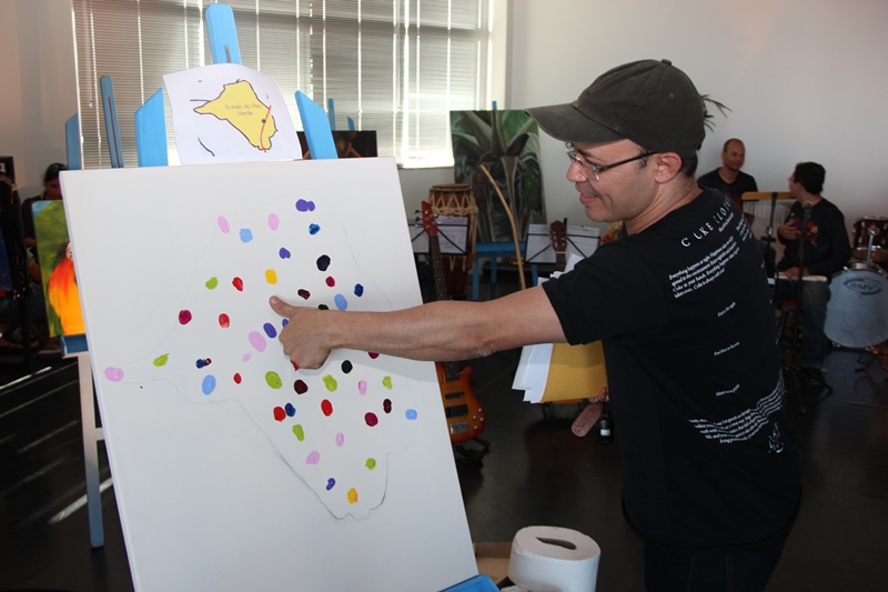 Todos que passam pelo local têm a oportunidade de deixar sua digital em uma tela com o mapa de Lucas do Rio Verde como forma de apoio à cultura no município.