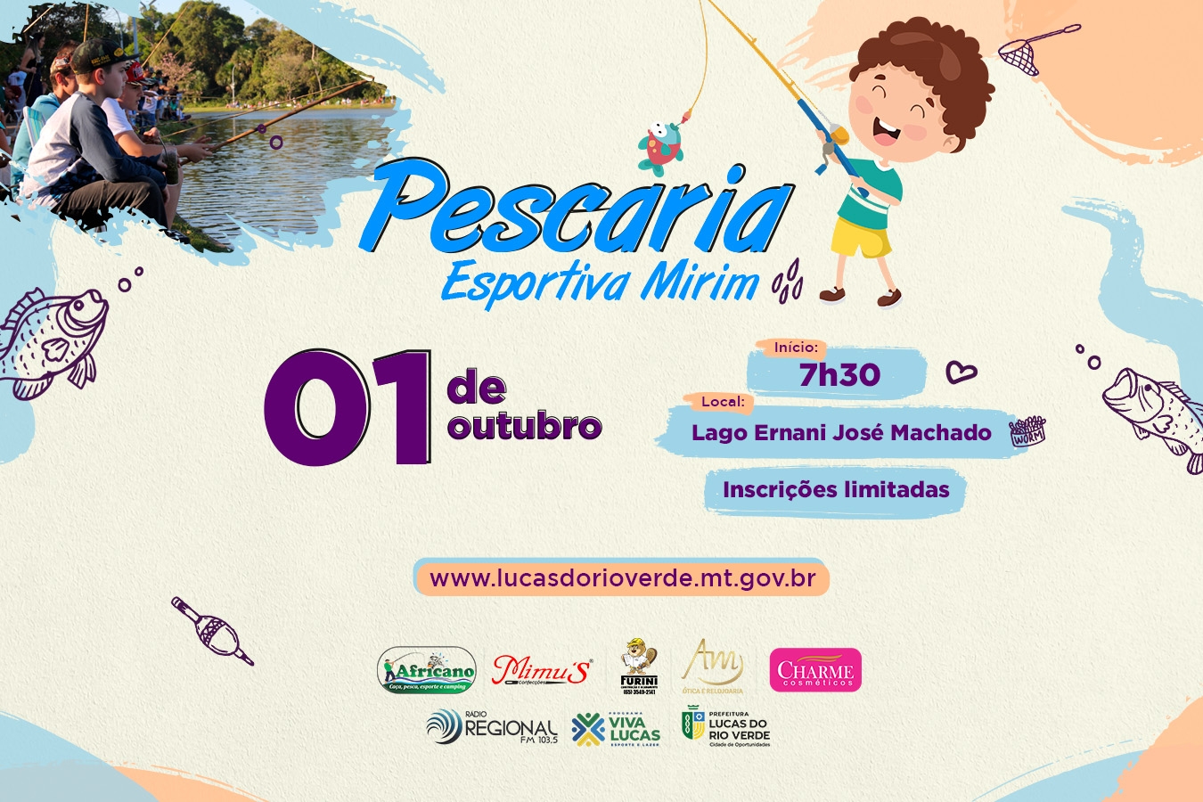 Estão abertas as inscrições para a sétima edição do Festival de Pesca Esportiva Mirim 2023. O evento é uma realização da Prefeitura de Lucas do Rio Verde, por meio da Secretaria de Esporte e Lazer e da Rádio Regional FM. O Festival acontece no dia 01 de outubro, a partir das 7h30, no Lago Municipal Ernani José Machado.