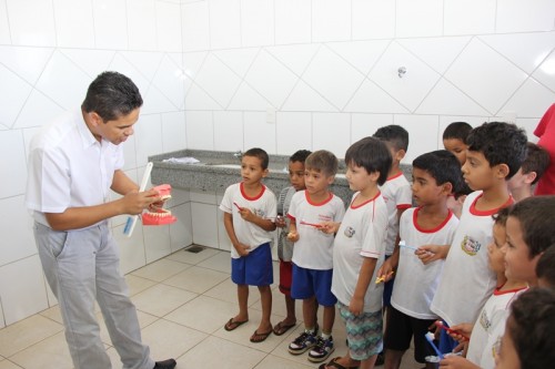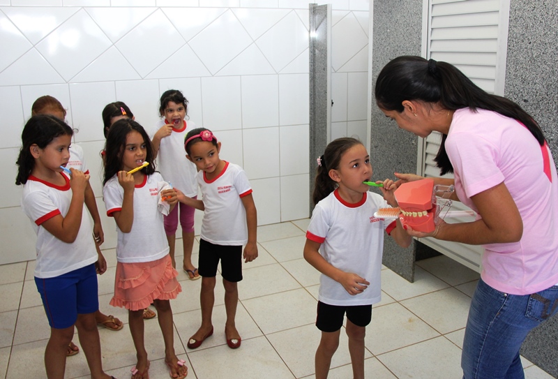 Um grupo de dentistas e auxiliares da Secretaria Municipal de Saúde está visitando as escolas da rede municipal de Lucas do Rio Verde. O objetivo da visita é ensinar as crianças a escovar os dentes de maneira correta e a prevenir as cáries.