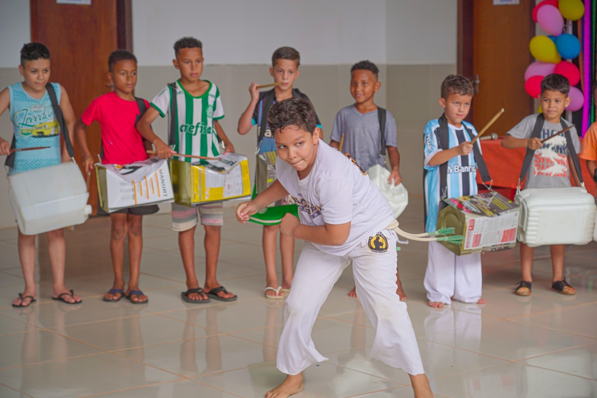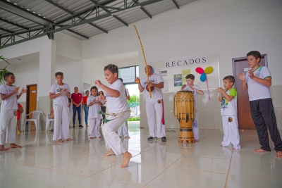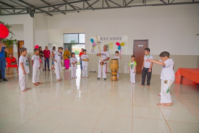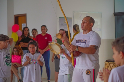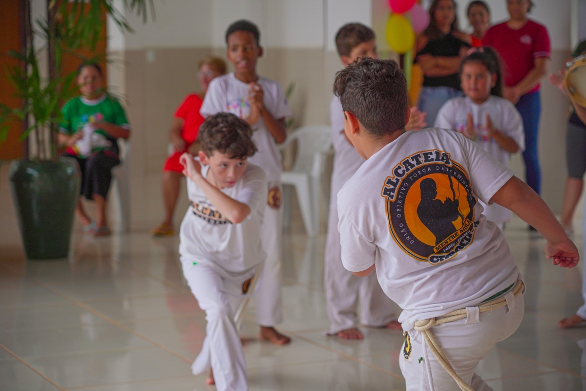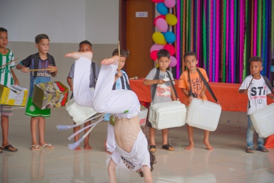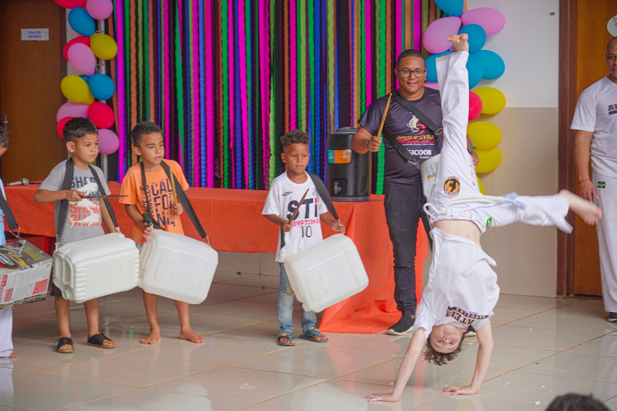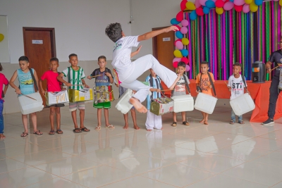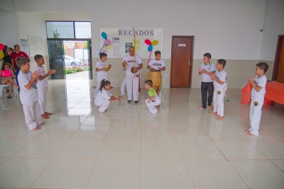 O evento contou com sorteios de brindes, lanches, guloseimas, muitas brincadeiras e apresentação das crianças das oficinas de bate lata e capoeira.