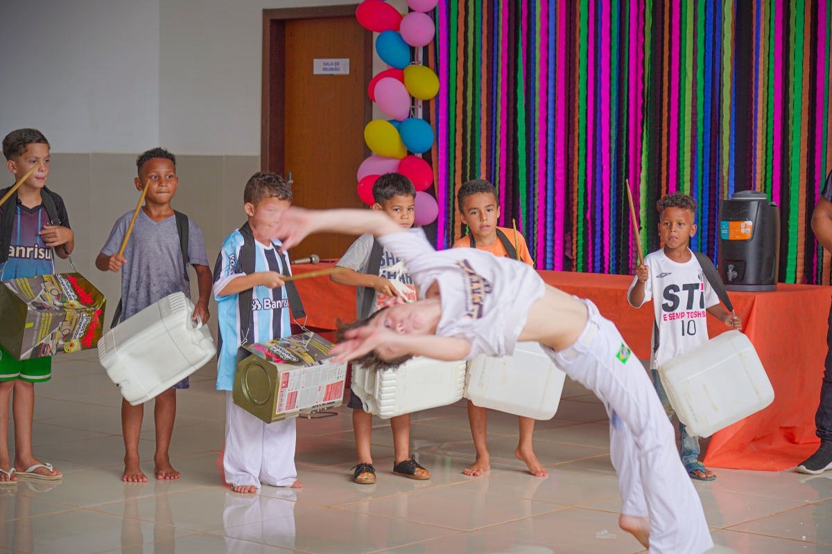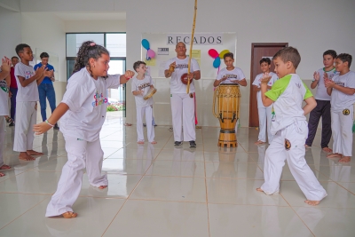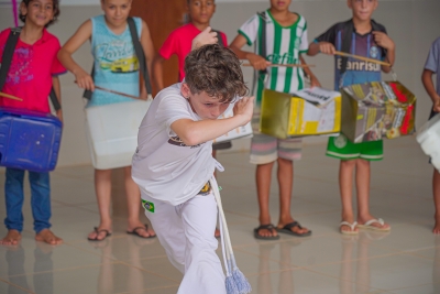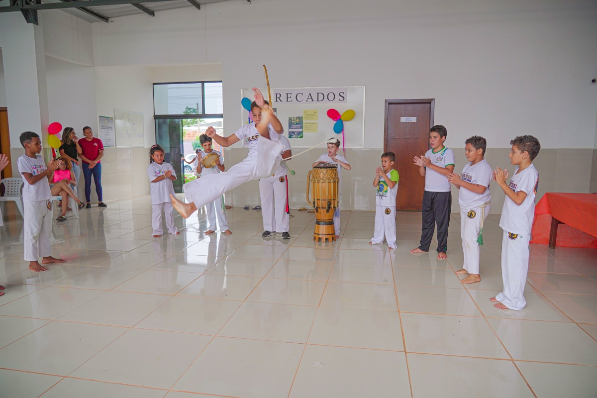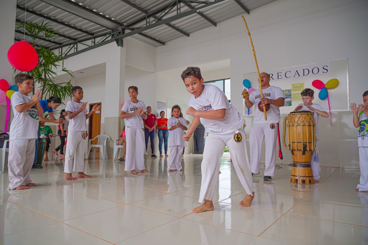 O evento contou com sorteios de brindes, lanches, guloseimas, muitas brincadeiras e apresentação das crianças das oficinas de bate lata e capoeira.