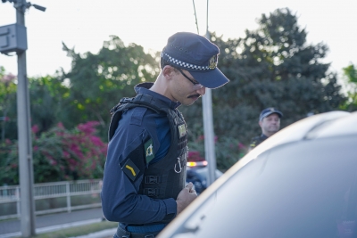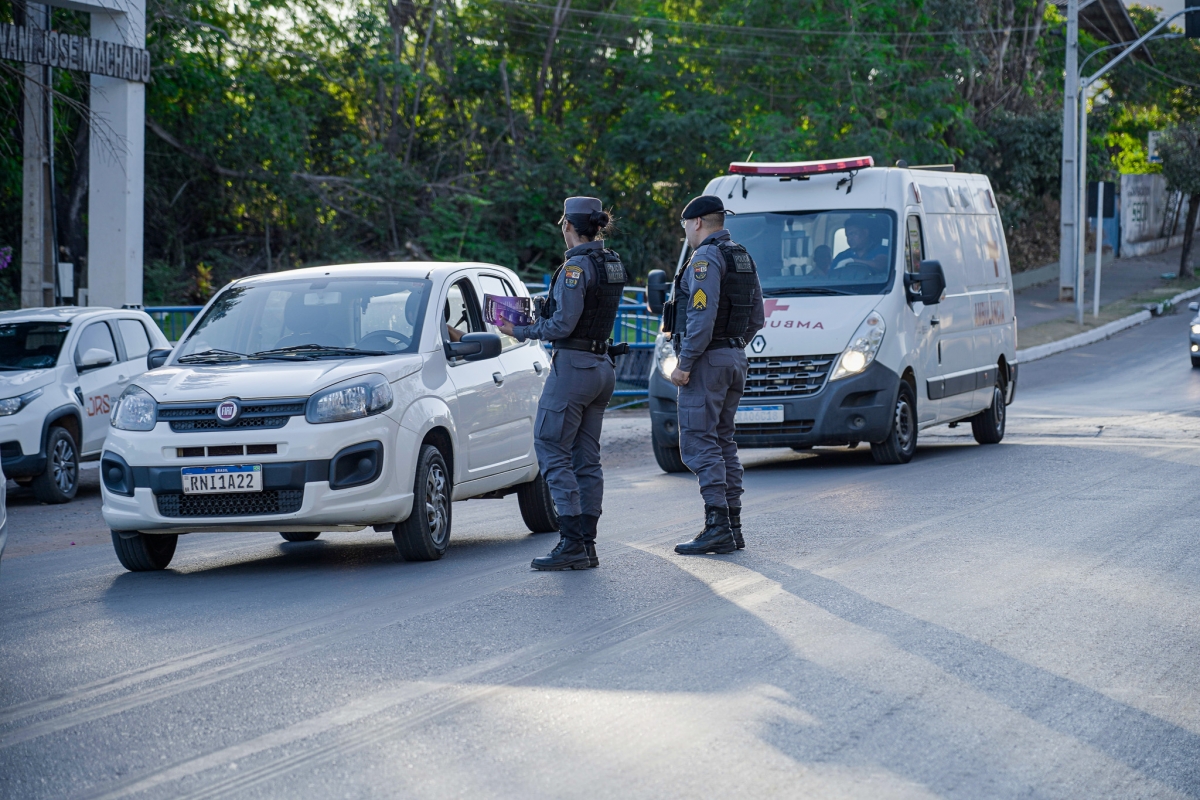 Com a efetiva participação da Guarda Civil Municipal (GCM), Polícia Militar de Lucas do Rio Verde e de Nova Mutum, na tarde de terça-feira (12), foi realizada na Avenida Tocantins, nas proximidades do Lago Ernani José Machado, uma Blitz Educativa com entrega de panfletos orientativos do Agosto Lilás - mês de combate a violência contra a Mulher.