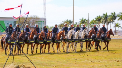 A ensolarada terça-feira (04) foi marcada pela cerimônia de formatura do 10º curso de Policiamento Montado (Cavalaria) de Lucas do Rio Verde. O evento foi realizado na rotatória do Paço Municipal, após 53 dia de treinamento dos Policiais Militares que definitivamente passam a compor a equipe da tropa especializada que atuará, de forma definitiva, no município.