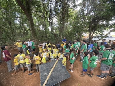Na programação foram feitas rondas noturnas, produção das refeições e organização, os participantes foram divididos em grupos para a realização de atividades como desenvolvimento de brinquedos e jogos educativos a partir de resíduos recicláveis.