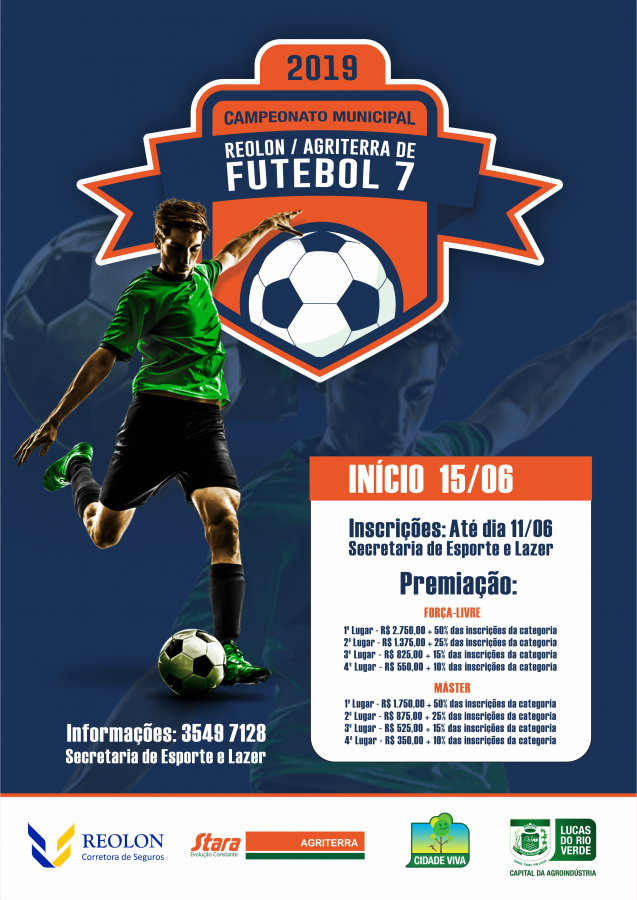 A Secretaria Municipal de Esporte e Lazer dá início nesta semana às inscrições para o Campeonato de Futebol 7 de Lucas do Rio Verde. Os interessados em participar terão até o dia 11 de junho para inscrever as equipes.