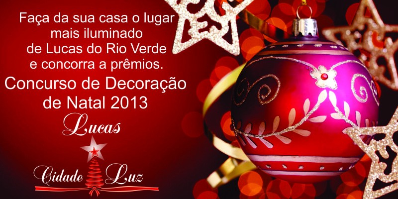 Estão abertas a partir de segunda-feira (25), as inscrições para o Concurso de Decoração de Natal 2013. Para participar, basta se inscrever até o dia 3 de dezembro através do site da Prefeitura de Lucas do Rio Verde ou pessoalmente, na Secretaria Municipal de Cultura e Turismo.