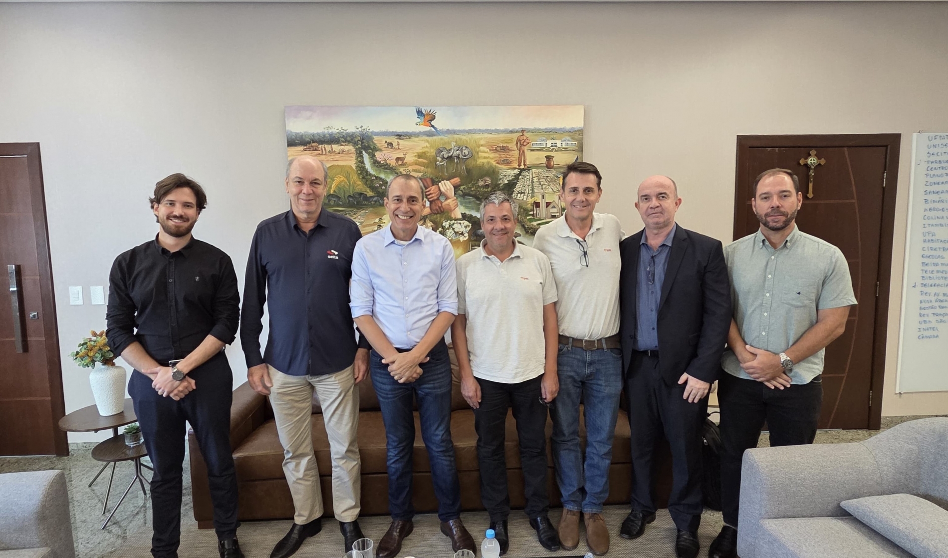 Na segunda-feira anterior, dia 28 de julho, os investidores, ao lado do secretário municipal de Desenvolvimento Econômico, participaram de uma agenda institucional em Cuiabá, na Secretaria de Desenvolvimento Econômico do Estado de Mato Grosso (Sedec-MT). O objetivo foi apresentar o projeto e buscar apoio institucional para as fases de licenciamento e implantação. O encontro contou com a presença do diretor-presidente da Invest MT, Mirael Praeiro; do secretário adjunto de Agronegócio e Investimentos, Anderson Lombardi; da secretária adjunta de Agronegócio, Crédito e Energia, Linacis Silva Vogel Lisboa; e do coordenador de Comércio Exterior da Sedec-MT, Leonardo Figueiredo.
