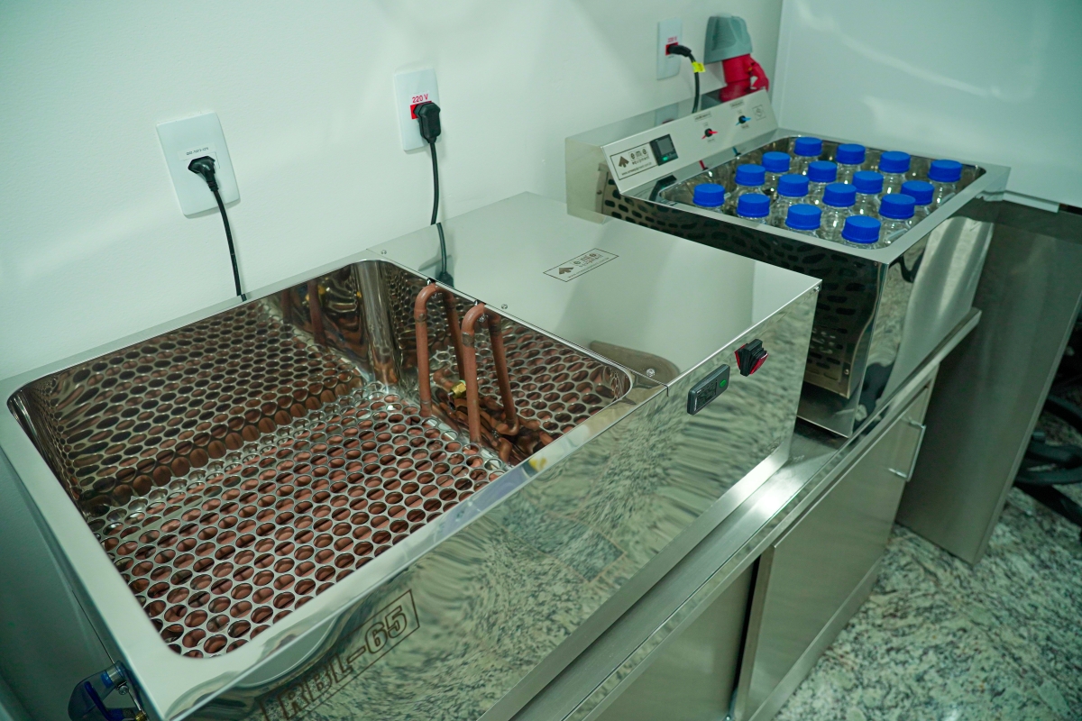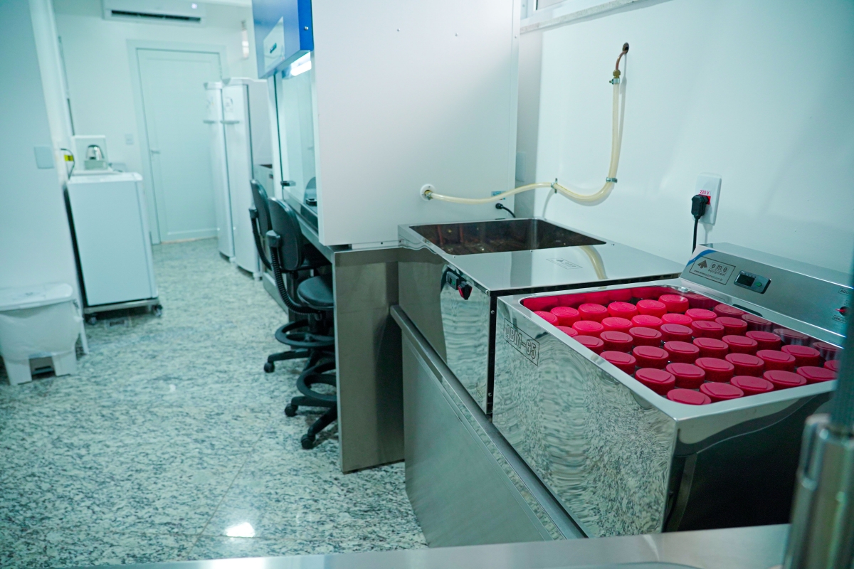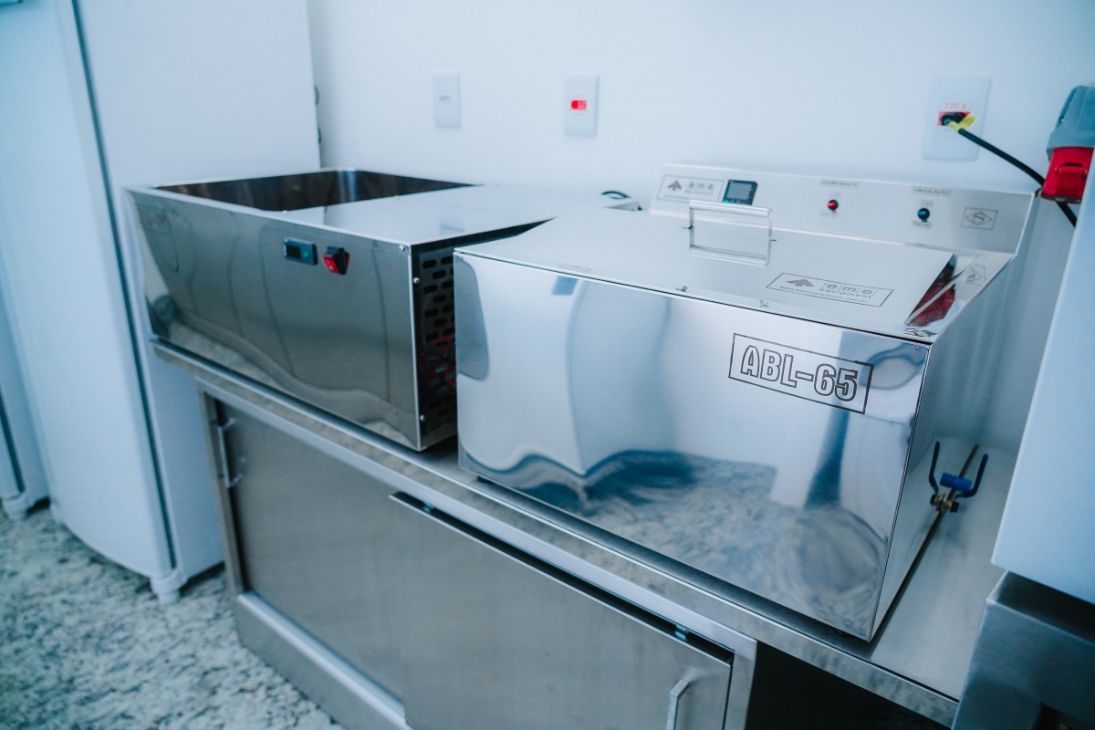 Entre os equipamentos estão a capela de fluxo laminar, pasteurizadores, resfriadores, centrífugas de micro hematócrito, agitador de tubo vórtex, balança analítica, acidímetro, freezer, frigobar, deionizador, entre outros. Os móveis também são em aço inox conforme norma da Vigilância Sanitária, além de aparelhos de ar condicionado para manter a temperatura recomendada de 21C°, termômetros nos freezers, para monitoramento da temperatura, e ainda, termo higrômetros em cada um dos ambientes, a fim de monitorar temperatura e humidade do local.