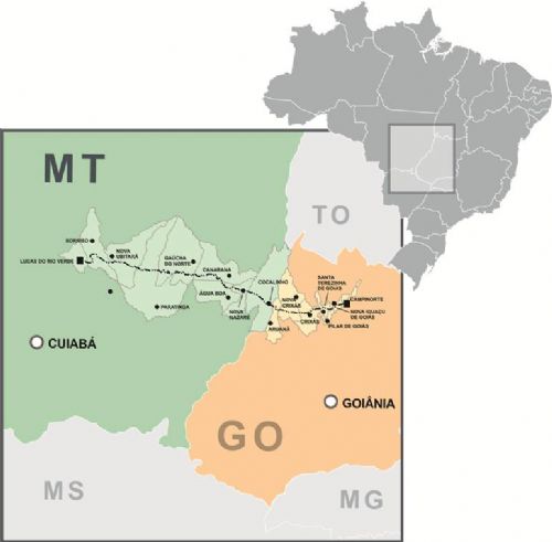 A ferrovia integra o Programa de Investimentos em Logísticas, lançado em agosto do ano passado pelo governo. O trecho terá 1.065 km de extensão, cortando 16 municípios, sendo nove em Mato Grosso e sete em Goiás. O investimento previsto é de R$ 6,6 bilhões.