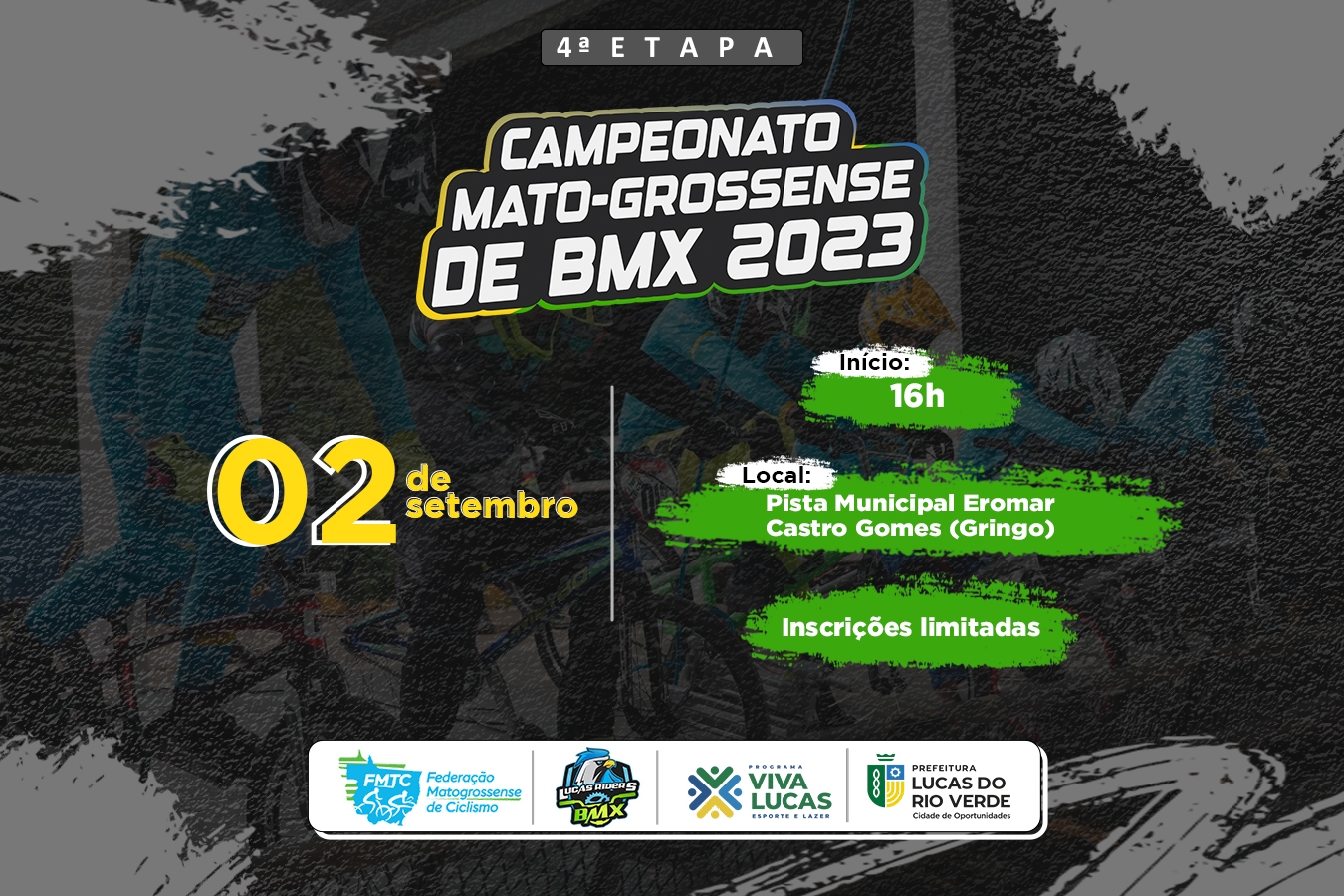 Lucas do Rio Verde sedia, no próximo sábado (02), a 4ª Etapa do Campeonato Mato-grossense de BMX. A competição acontece a partir das 16h, na Pista Municipal Eromar Castro Gomes (Gringo).