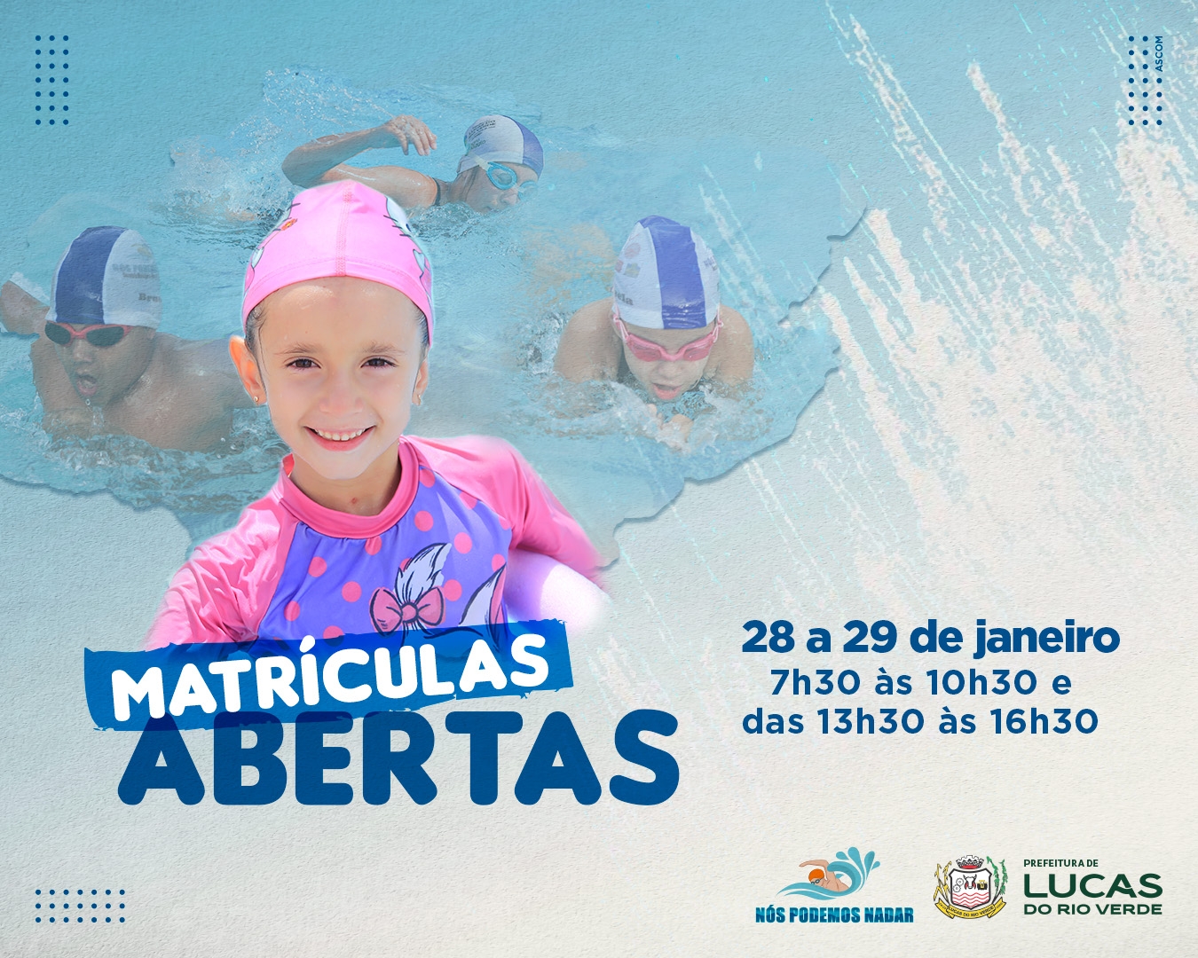 A Prefeitura de Lucas do Rio Verde, por meio da Secretaria de Educação, informa que as matrículas para as aulas de natação para iniciantes do projeto social Nós Podemos Nadar abrem nesta quarta-feira (28). A modalidade é ofertada gratuitamente e as aulas acontecem nas piscinas das escolas do município.