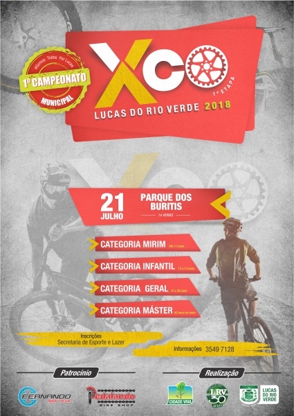 Terminam na próxima quarta-feira (18), as inscrições para Campeonato Municipal de Mountain Bike XCO 2018, promovido pela Prefeitura de Lucas do Rio Verde, por meio da Secretaria de Esporte e Lazer. A competição acontece às 14h, no dia 21 de julho, no Parque dos Buritis.