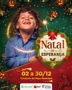 “A expectativa para o Natal da Esperança é muito grande, por ser um momento tão esperado pelos moradores e visitantes. Estamos ansiosos e nos preparando intensamente, com os setores mobilizados, para que a comunidade possa usufruir da melhor qualidade estrutural e de uma bela programação cultural, sentindo a magia deste período tão importante do ano”, contou a secretária de Cultura e Turismo, Luciana Bauer.