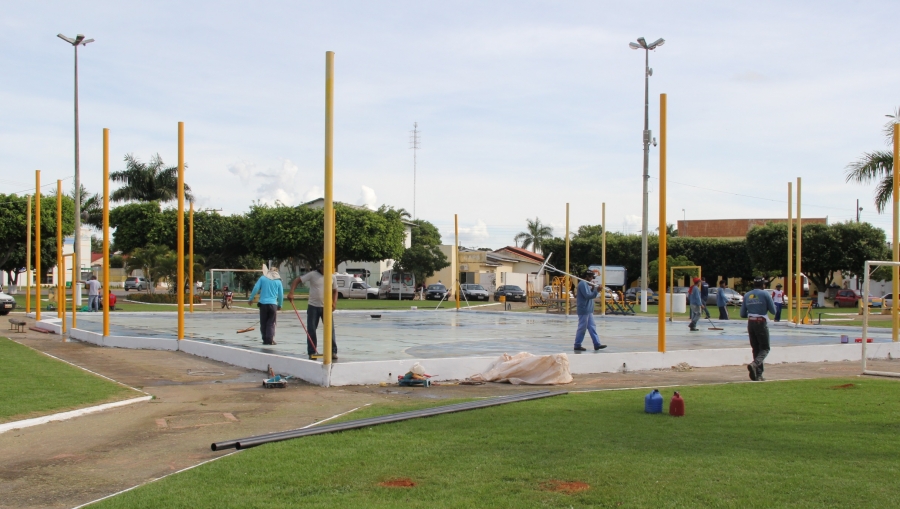 Estão sendo realizadas a pintura da quadra de esportes, troca das redes e consertos nos equipamentos de ginástica, melhorias nas instalações elétricas, iluminação e poda de árvores e jardinagem. A meta é concluir as obras até amanhã (29) e entregar a praça novamente a população.