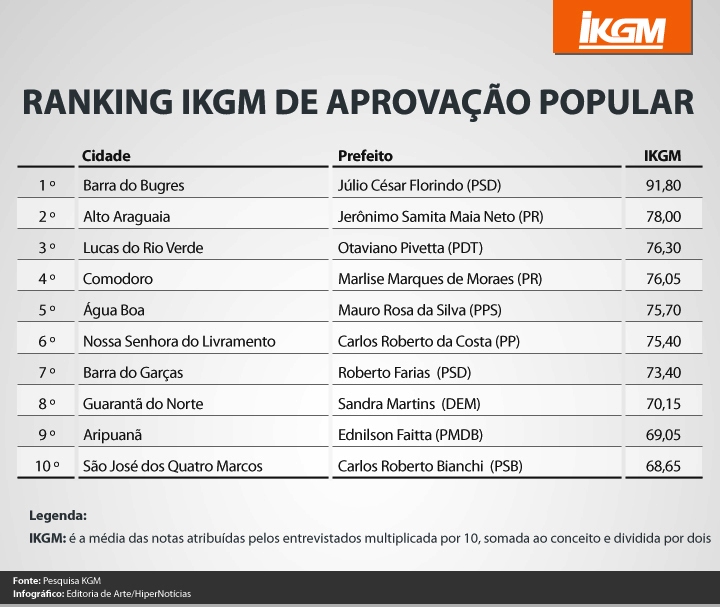 De acordo com a KGM, o estudo foi realizado nos 50 maiores municípios de Mato Grosso. Em cada um deles foram realizadas pesquisas de opinião avaliando a administração pública, em uma escala que varia de péssimo a ótimo. A avaliação refere-se aos primeiros seis meses da nova gestão.