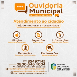 A Ouvidoria de Lucas do Rio Verde busca promover a transparência pública, o acesso à informação e a defesa dos usuários do serviço público municipal.