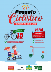 A Prefeitura de Lucas do Rio Verde, por meio da Secretaria de Esporte e Lazer e do Programa Cidade Viva, em parceria com a Eletromóveis Martinello, realiza no dia 26 de outubro, a 21ª edição do Passeio Ciclístico Pedalando pela Vida.