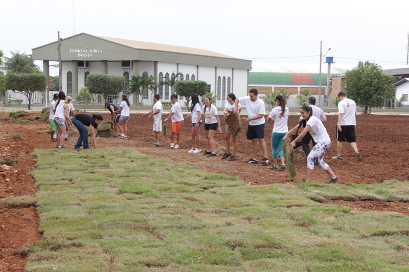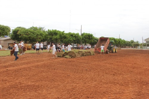 A Prefeitura de Lucas do Rio Verde iniciou, na manhã de hoje (11), o processo de ornamentação da Praça da Liberdade, a primeira praça ecológica do município. O plantio de grama foi realizado pelos professores do Programa Vida Nova e outros servidores públicos.