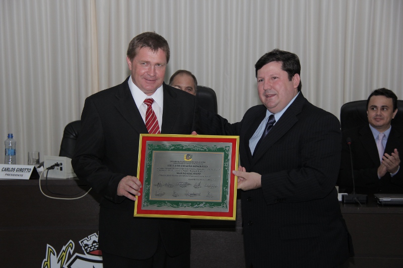 Resultado do trabalho realizado a frente da Prefeitura de Lucas do Rio Verde, o prefeito Marino Franz também recebeu na noite de ontem (17), na Câmara Municipal, o título de “Cidadão Honorário de Lucas do Rio Verde”.