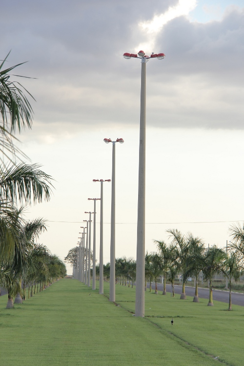Cada um dos postes, possui quatro lâmpadas brancas de 400 watts, o que garante melhor luminosidade, mais durabilidade e segurança as pessoas que transitam pela via.