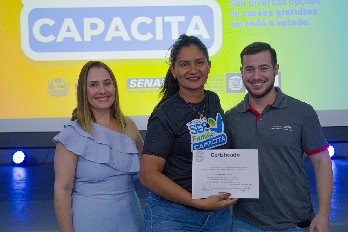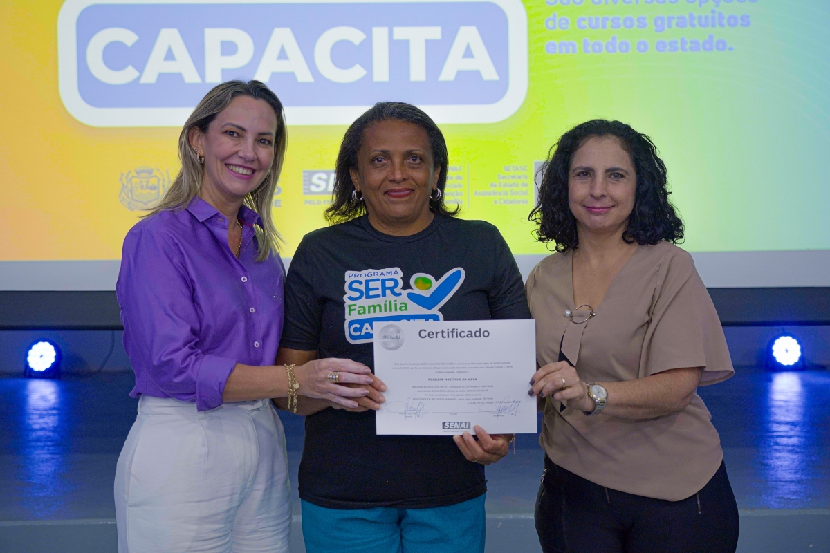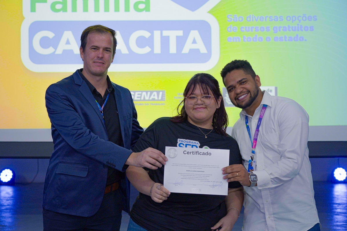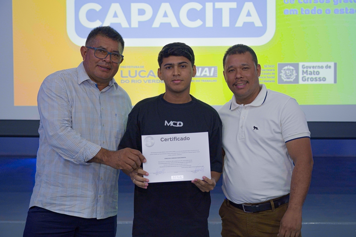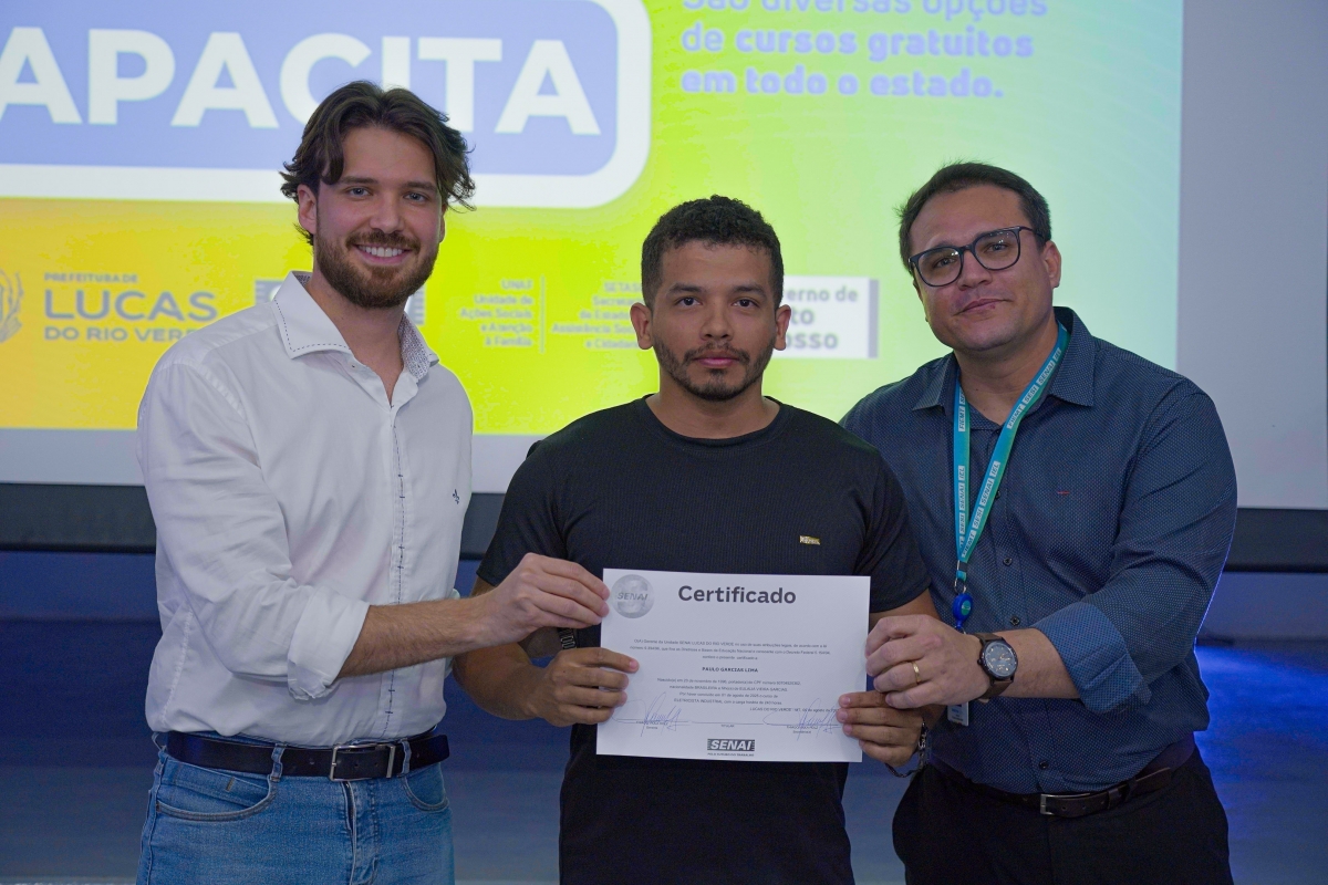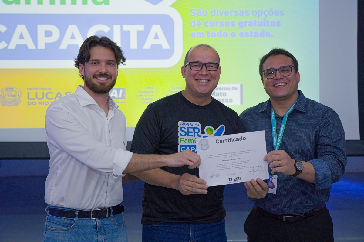 A Prefeitura de Lucas do Rio Verde, por meio da Secretaria de Assistência Social e Habitação e da Secretaria de Desenvolvimento Econômico, Planejamento e Cidade, em parceria com o Serviço Nacional de Aprendizagem Industrial (Senai-MT), realizou nesta segunda-feira (18) a cerimônia de entrega de certificados para 99 alunos que concluíram cursos gratuitos oferecidos pelos programas Ser Família Capacita, do Governo do Estado, e Qualifica Lucas.
