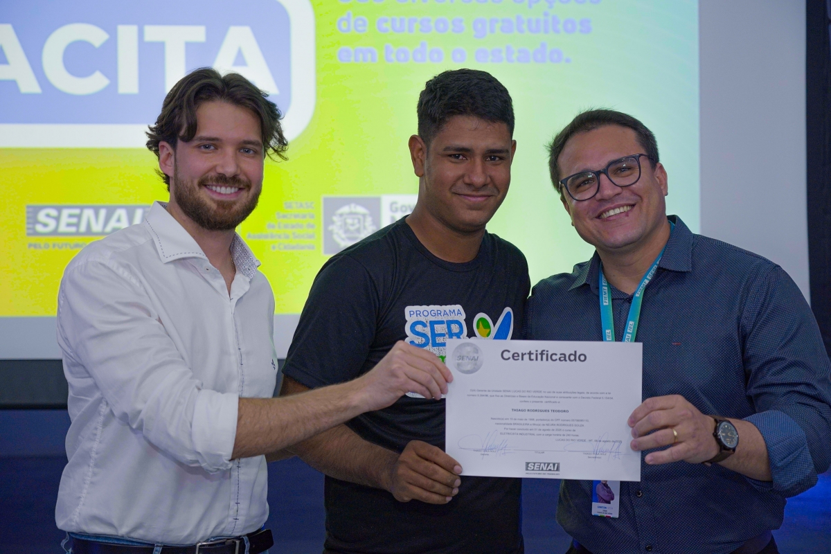 “O Senai atua com educação profissional voltada para o mercado de trabalho. Hoje entregamos certificados de qualificação para sete turmas que, a partir de agora, possuem uma profissão e o conhecimento técnico necessário para ingressar no mercado ou empreender. Nossa cidade cresce muito, recebe novos investidores e empresas com frequência. Por isso, precisamos de pessoas preparadas, com inovação, tecnologia e competências socioemocionais que também trabalhamos em sala de aula”, explicou.