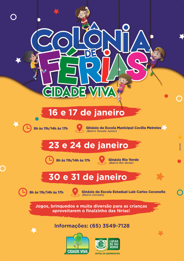 A Prefeitura de Lucas do Rio Verde, por meio da Secretaria de Esporte e Lazer, promove a partir desta semana mais uma edição da Colônia de Férias Cidade Viva. As atividades serão realizadas em três locais diferentes da cidade.