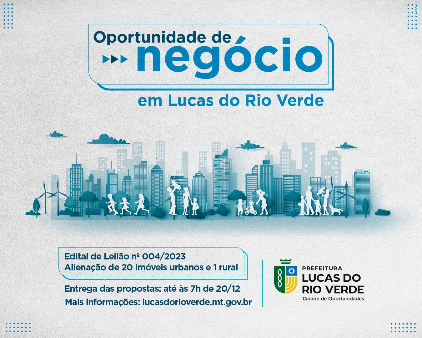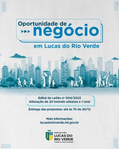 A Prefeitura de Lucas do Rio Verde colocou 21 terrenos à disposição através de leilão. As oportunidades de negócio são para a área urbana e rural. Com a venda das áreas do Município, a proposta é que o valor arrecadado seja investido em mais programas habitacionais.