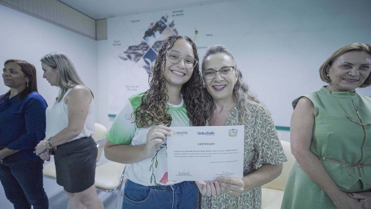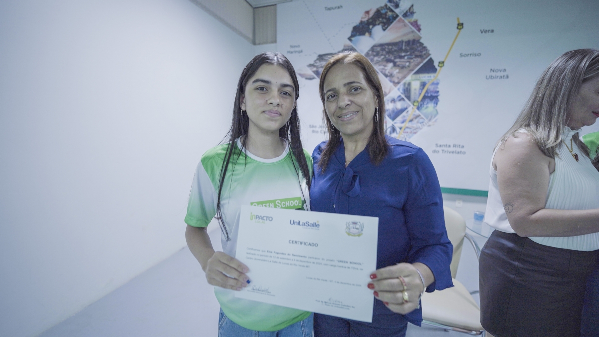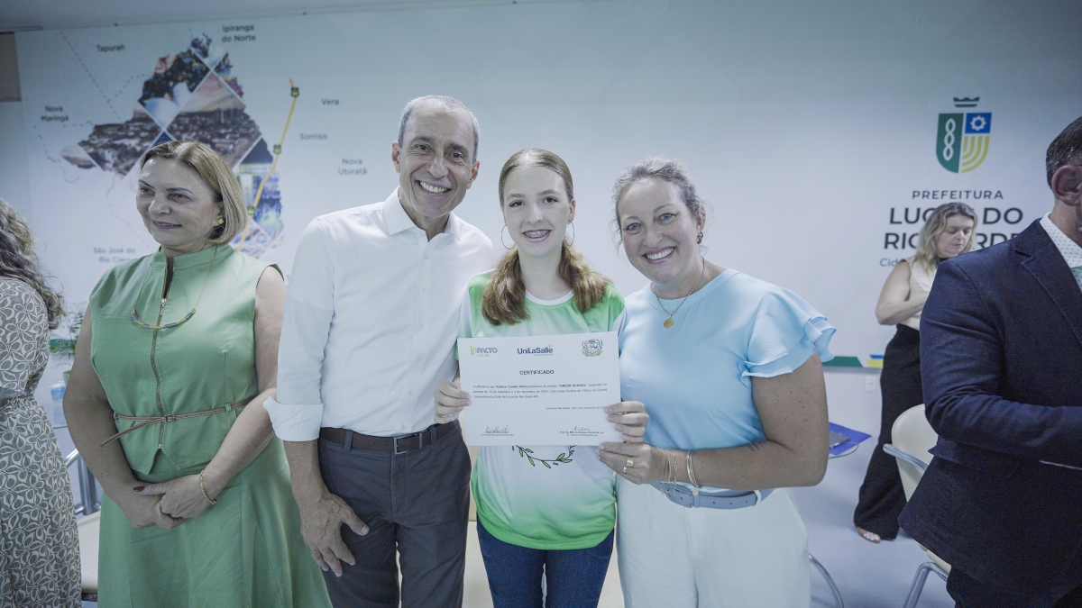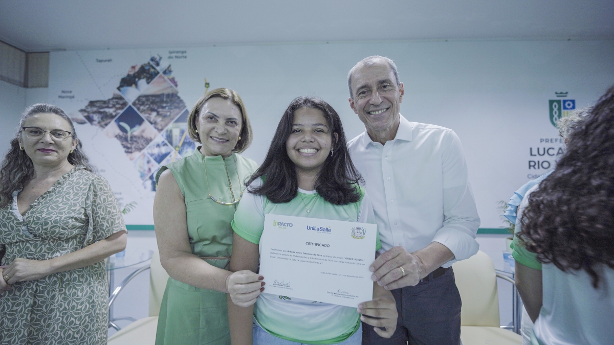 A Prefeitura de Lucas do Rio Verde, por meio da Secretaria de Educação, realizou nesta quarta-feira (03), a formatura da primeira turma do Projeto Green School, que é um dos selecionados a fazer parte do Ecossistema de Inovação de Lucas do Rio Verde - InPacto Lucas. Incluído no macrodesafio de Educação Inovadora, o projeto tem por objetivo desenvolver competências e habilidades aos estudantes das escolas municipais para a economia verde e o agronegócio do futuro.