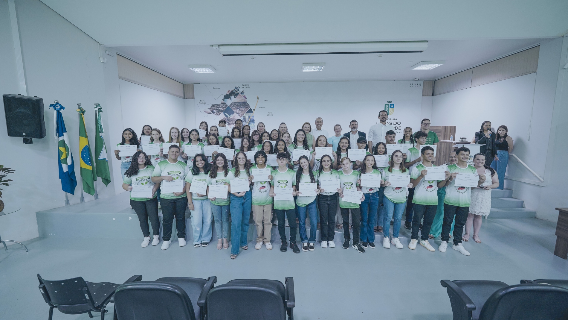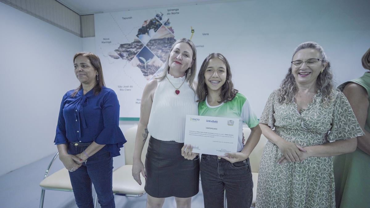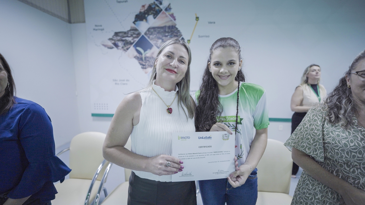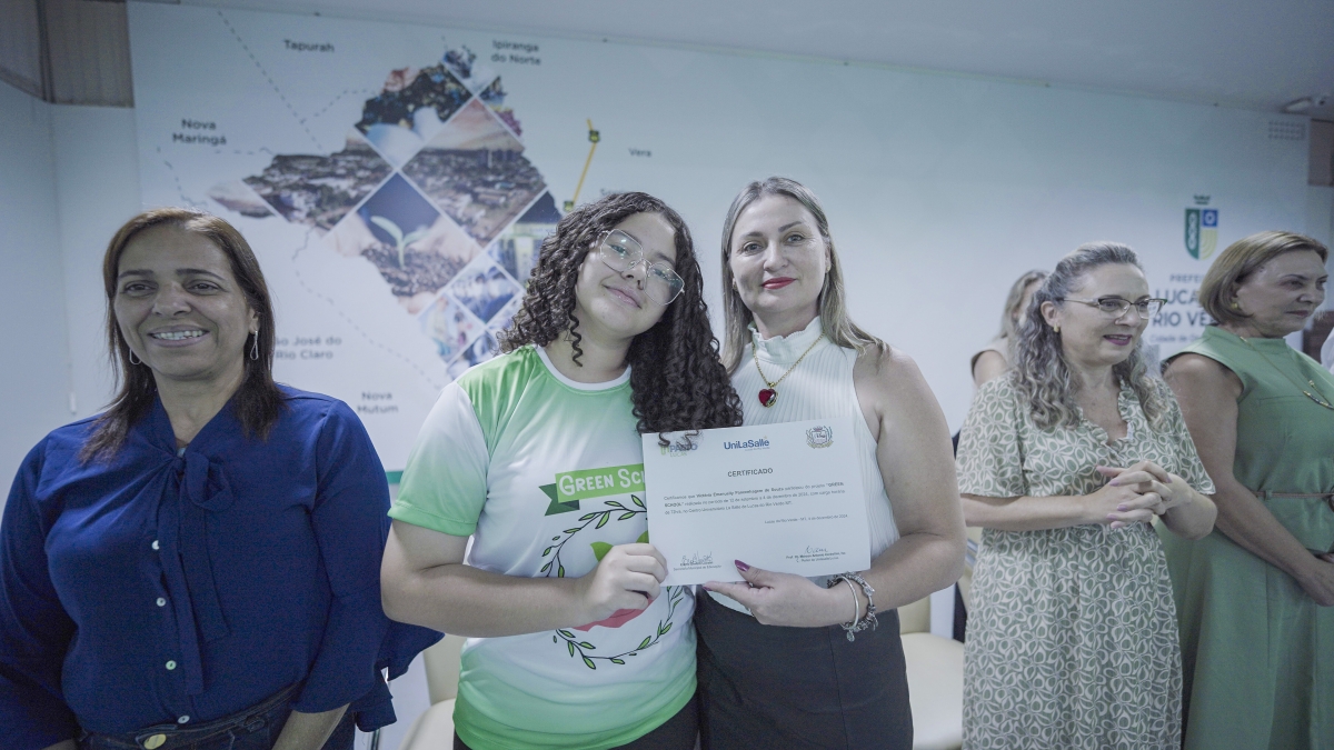 A Prefeitura de Lucas do Rio Verde, por meio da Secretaria de Educação, realizou nesta quarta-feira (03), a formatura da primeira turma do Projeto Green School, que é um dos selecionados a fazer parte do Ecossistema de Inovação de Lucas do Rio Verde - InPacto Lucas. Incluído no macrodesafio de Educação Inovadora, o projeto tem por objetivo desenvolver competências e habilidades aos estudantes das escolas municipais para a economia verde e o agronegócio do futuro.