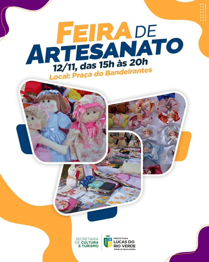 A Prefeitura de Lucas do Rio Verde convida a população luverdense para mais uma edição da Feira de Artesanato. Promovida pela Secretaria de Cultura e Turismo, a feira será realizada neste sábado (12), a partir das 15h, na praça do bairro Bandeirantes.
