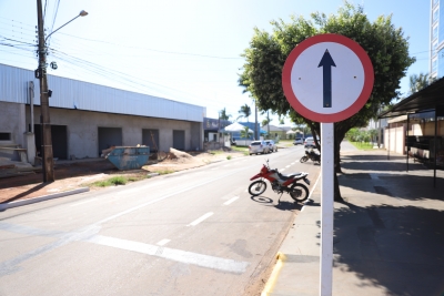 Para orientar os condutores, o Departamento de Trânsito fez toda a sinalização horizontal, demarcando no asfalto os trechos de estacionamento e indicação de sentido da via, além da sinalização vertical, com a implantação de placas ao longo da rua.