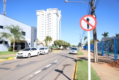 A Rua Corbélia, no bairro Jardim das Palmeiras, sofreu alteração no sentido da via, passando a ser mão única no trecho entre as avenidas Brasil e Rio de Janeiro, atrás do Espaço Saúde, região do antigo Fórum.
