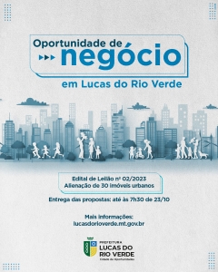 Com a modernização do sistema de leilão e demais licitações da Prefeitura de Lucas do Rio Verde, as propostas de lances para aquisição de bens, passam a ser de forma eletrônica. Atualmente, conforme o Departamento de Licitações e Contratações, estão disponíveis dois editais, sendo o 02/2023, de alienação de 30 imóveis urbanos e o 03/2023, de alienação de 2 imóveis rurais.