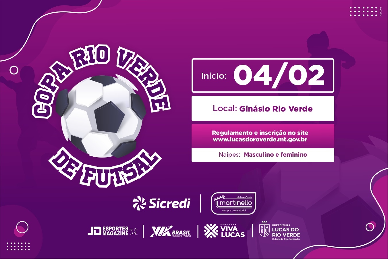 A Copa Rio Verde de Futsal será a partir de 04 de fevereiro. As duas melhores equipes das categorias Força Livre masculino e feminino, além de receberem troféus e medalhas, terão apoio logístico da Secretaria de Esporte e Lazer em até duas competições ao longo de 2023.