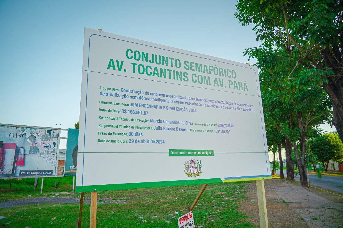 Na próxima semana, a cidade contará com um novo conjunto semafórico, na Avenida das Nações com a Rua João Goulart, entre os bairros Parque das Américas e Jaime Seiti Fujii. Com isso, Lucas do Rio Verde terá 07 cruzamentos controlados por semáforos.