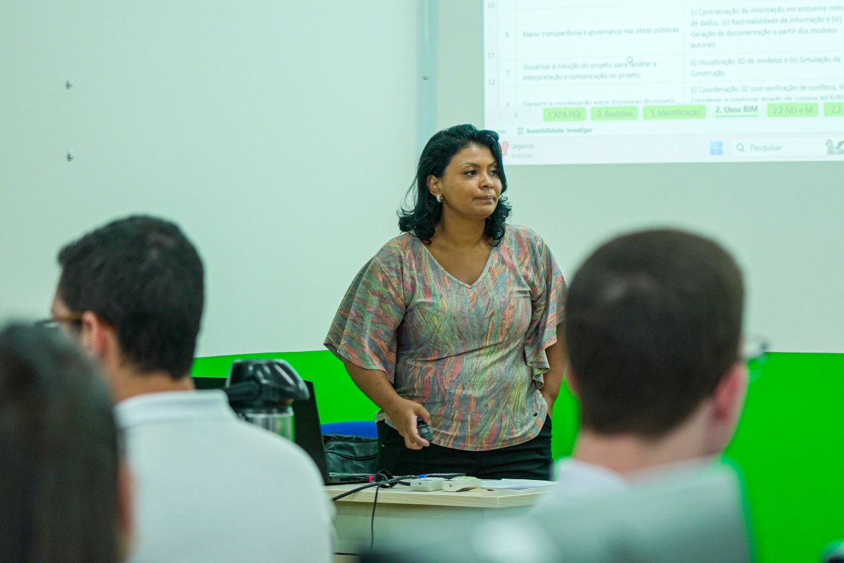 Ministrado presencialmente, o curso “Introdução à Tecnologia BIM com foco na administração pública” teve como palestrante, a arquiteta e urbanista, Lucimara Lima, que abordou tópicos como: alinhamento conceitual, que cobrirá os principais conceitos técnicos relacionados ao tema, mapeamento estratégico, elaboração de Road Map com atribuição de metas anuais; Fluxo de trabalho em BIM, com foco na atuação prática dos servidores.