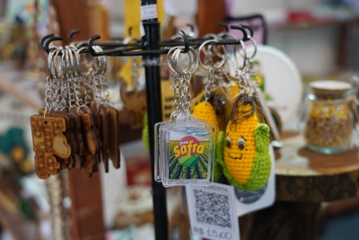 Os visitantes podem encontrar chaveiros, xícaras, porta guardanapos, panos de pratos e toalhas personalizadas, peças decorativas para o lar, lembranças com o nome da cidade, pulseiras, camisetas, tapetes, artefatos religiosos, artes em madeira, biscuit, terços e bolsas em crochê.