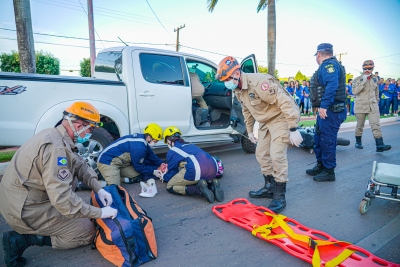 Segundo o capitão Gleiber Bertolazzo, do Corpo de Bombeiros, 85% das ocorrências atendidas no município são de acidente de trânsito. “Precisamos ter cuidado no trânsito, isso não é brincadeira. O apoio de todos faz-se necessário na conscientização, esse é um cuidado de todos, ninguém trabalha sozinho. Estamos aqui, hoje, ilustrando os primeiros socorros e acreditamos que o trabalho integrado das forças de segurança e população diminuirá esses índices”, discorre.