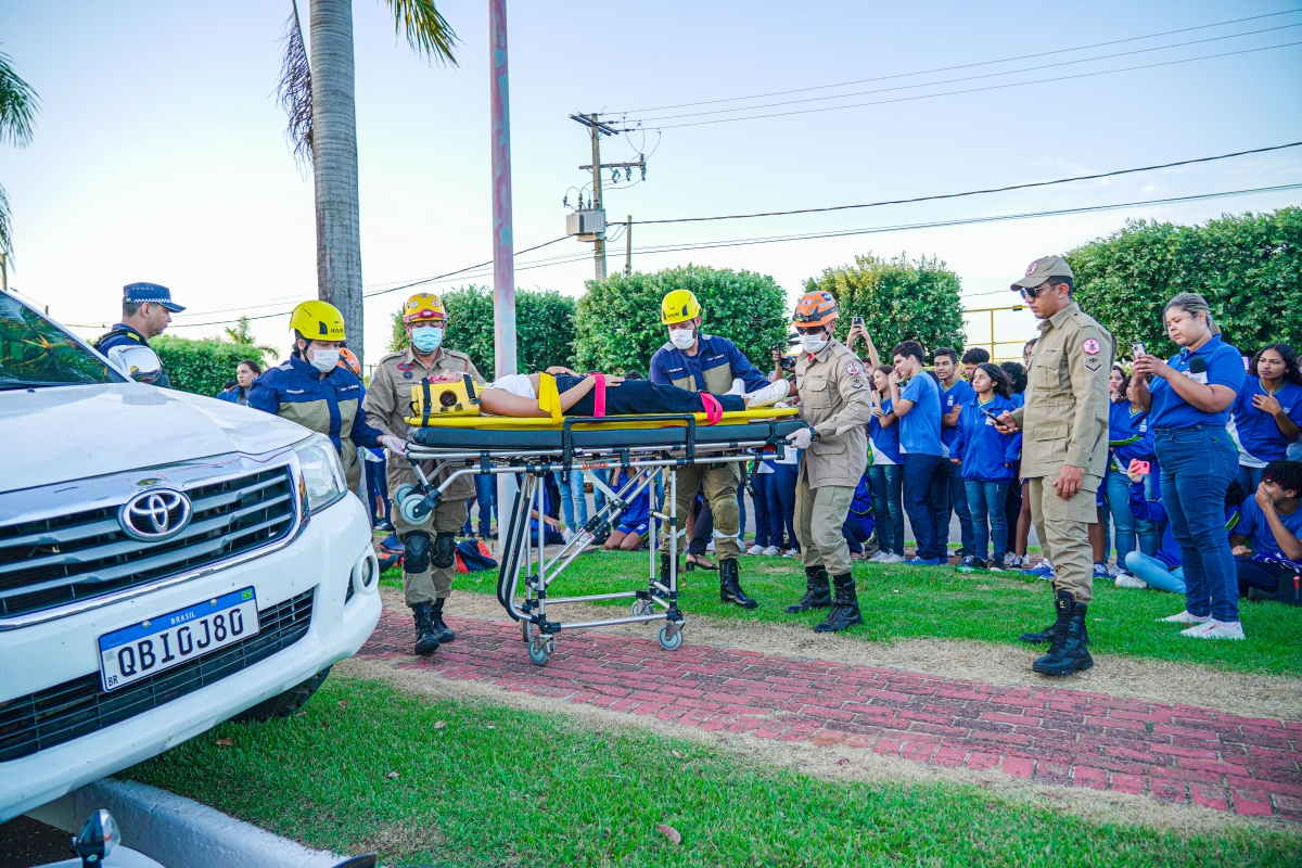 “A simulação do acidente é importante demais para todos que aqui passam. Trazer essa realidade para os adolescentes saindo das escolas é muito sério. Sabemos dos cuidados que precisamos ter durante o trânsito e faz-se necessário que a educação no trânsito inicie desde muito jovem. O objetivo da ação é de sensibilizar pedestres para travessia correta, os motociclistas, os condutores de veículos maiores a terem essa consciência”, explica o secretário de Segurança Pública, Cel. Cunha.