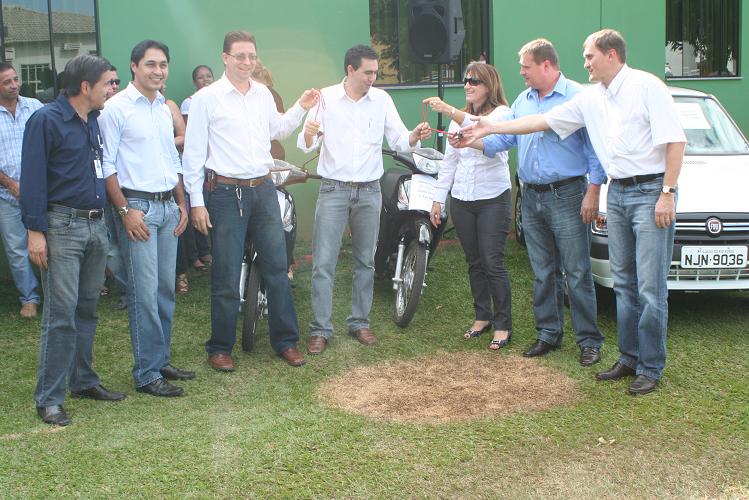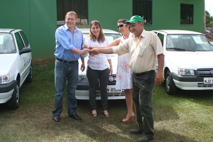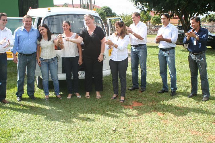 Terminou agora a pouco a entrega de seis novos veículos que serão utilizados pela Secretaria Municipal de Educação. O prefeito Marino Franz passou em mãos as chaves de três Fiat Uno para as diretoras das escolas municipais da zona rural, uma Kombi para ser utilizada pelas creches do município e duas motos Honda Biz para uso dos servidores da SMEC.