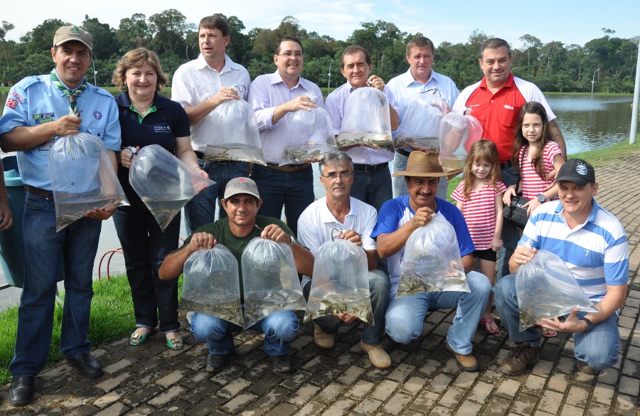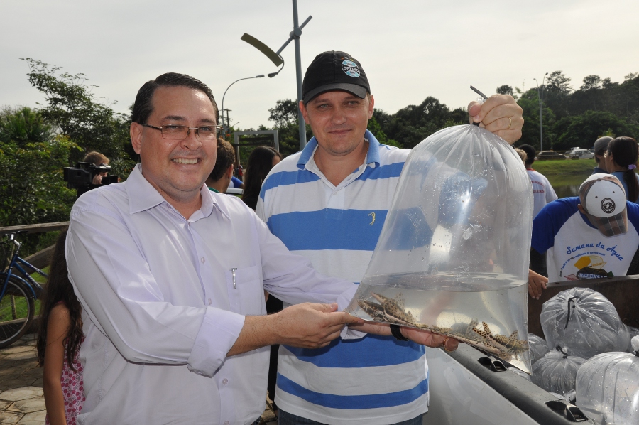 O penúltimo dia da sétima edição da Semana da Água foi marcado pela soltura de 2.500 alevinos de no Lago Ernani José Machado. O evento aconteceu no sábado (26) e reuniu diversas autoridades como o prefeito em exercício, Joci Piccini, o prefeito licenciado, Marino Franz, secretários municipais e dezenas de estudantes da rede pública de ensino.