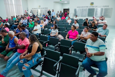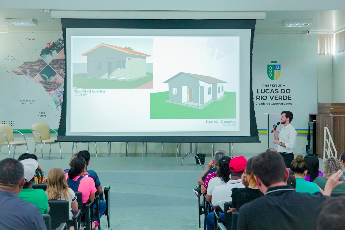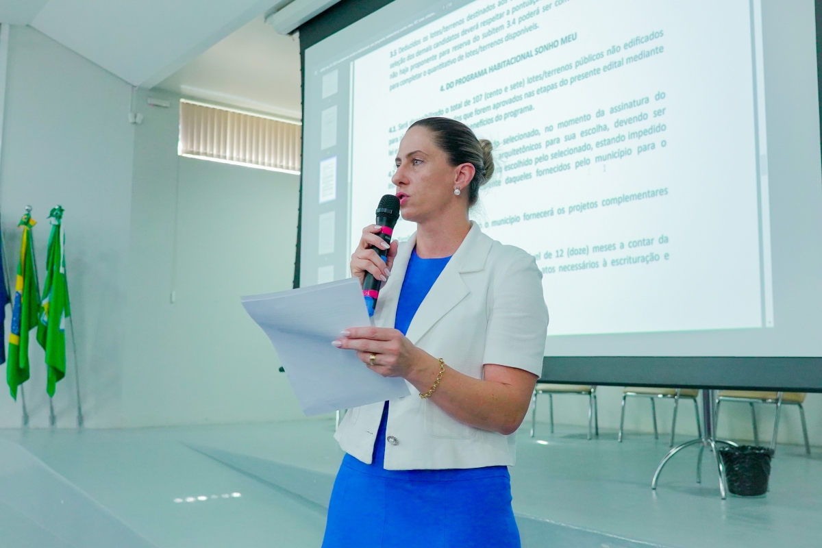 Em seguida, Marcos Vinicius Ribeiro, gerente da Caixa Econômica de Lucas do Rio Verde, falou sobre as condições de financiamento das casas, esclarecendo dúvidas e por fim, a procuradora municipal Derlise Marchiori explicou detalhes do edital.