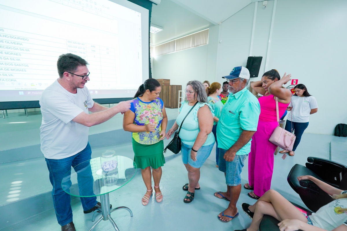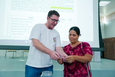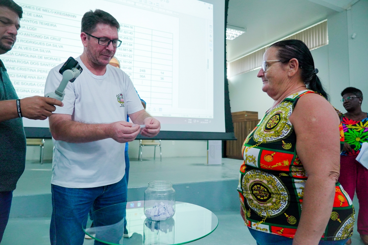 De forma democrática e transparente, cada beneficiário realizou o próprio sorteio do lote e quadra que irá morar, no auditório dos Pioneiros do Paço Municipal.