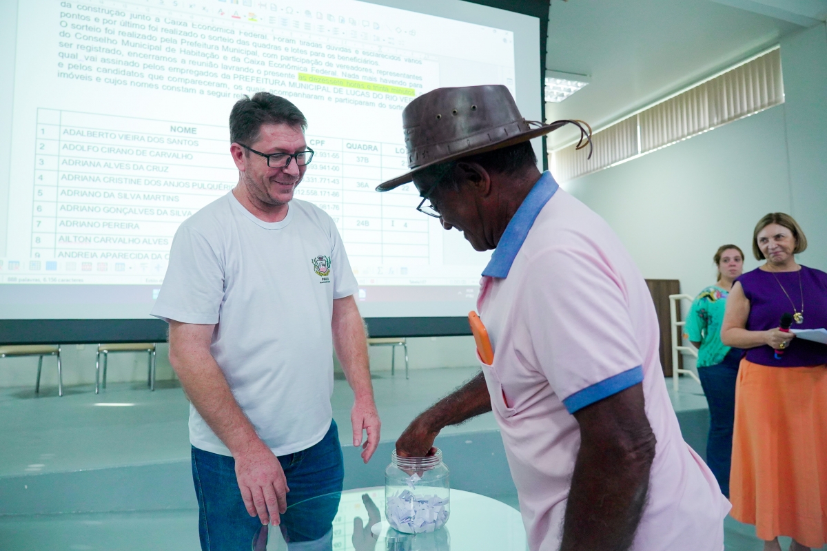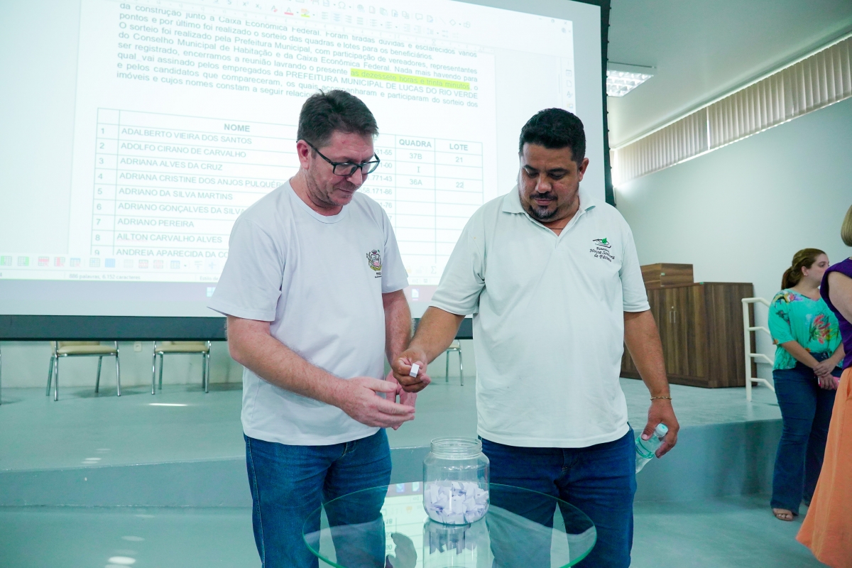 A Prefeitura de Lucas do Rio Verde, por meio da Secretaria de Assistência Social e Habitação, realizou na tarde desta quarta-feira (07) o sorteio das quadras e lotes aos 107 beneficiários dos lotes do Programa Habitacional Sonho Meu.