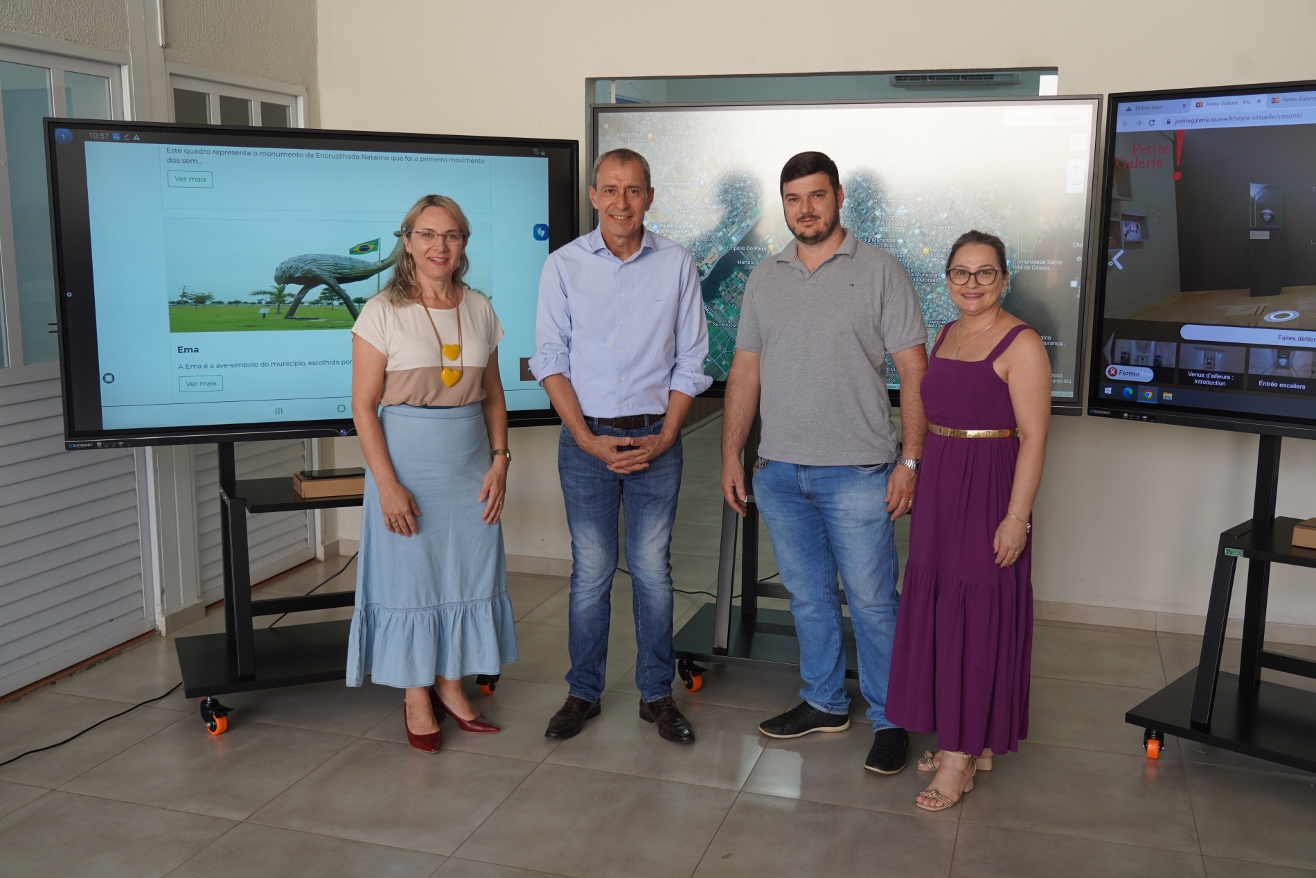 O ato de entrega foi realizado no Centro de Formação do Município. O prefeito Miguel Vaz ressaltou que o investimento vai beneficiar, inicialmente, as escolas Eça de Queirós, Olavo Bilac, Cecília Meireles, Menino Deus, São Cristóvão e Fredolino. “As telas representam o início de uma nova fase no nosso ensino. Os professores estarão dentro da sala de aula e serão extremamente importantes para o processo, mas o uso da tecnologia vai trazer a eles muito mais recursos, um mundo mais próximo para que os alunos tenham essa percepção. No futuro próximo, contemplaremos as demais escolas da rede municipal”, complementa.